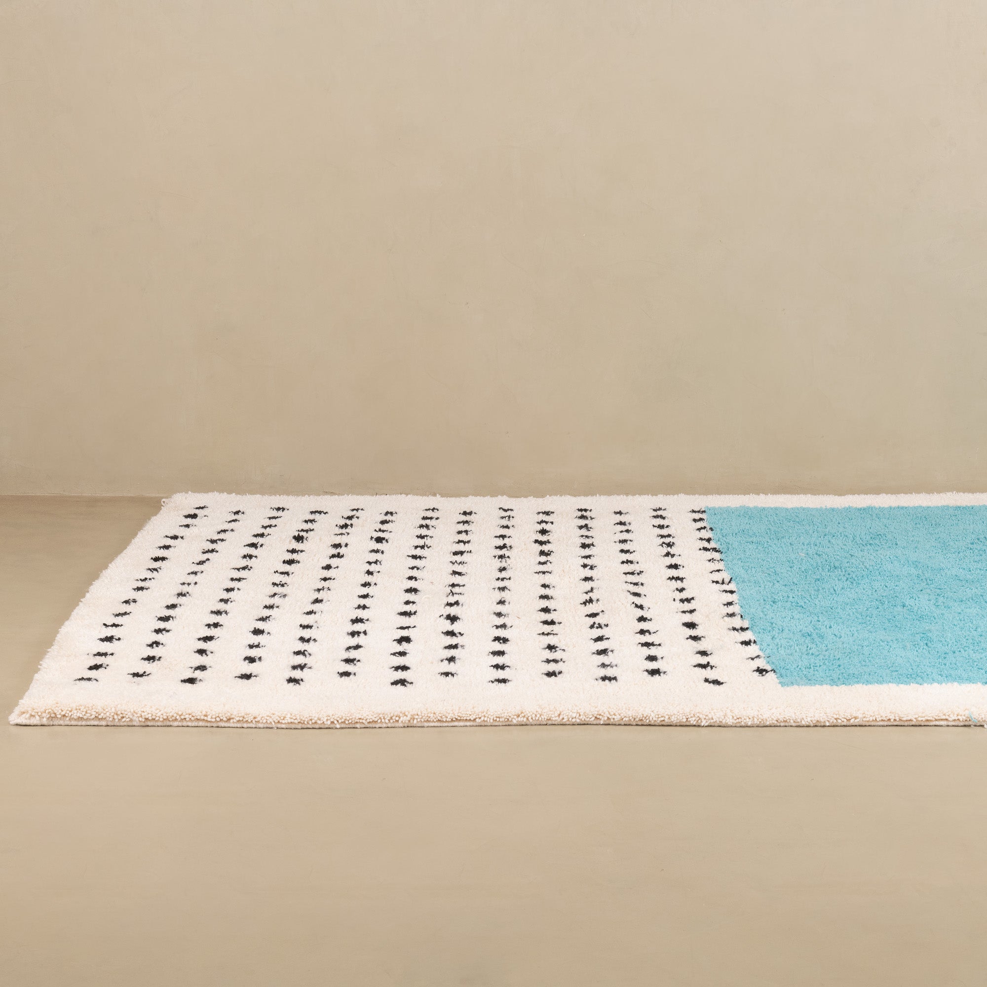 Chaque tapis est tissé nœud par nœud, puis lavé et séché à l'air libre sous le ciel serein du Maroc.