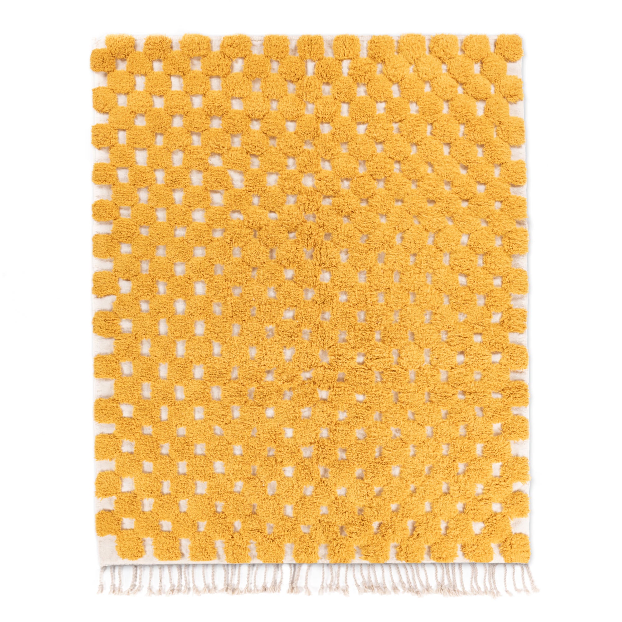Chaque tapis est tissé nœud par nœud, puis lavé et séché à l'air libre sous le ciel serein du Maroc.