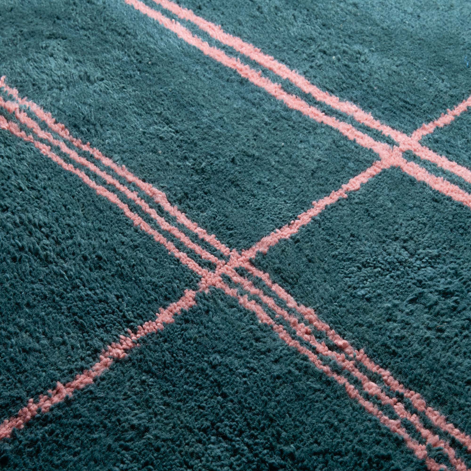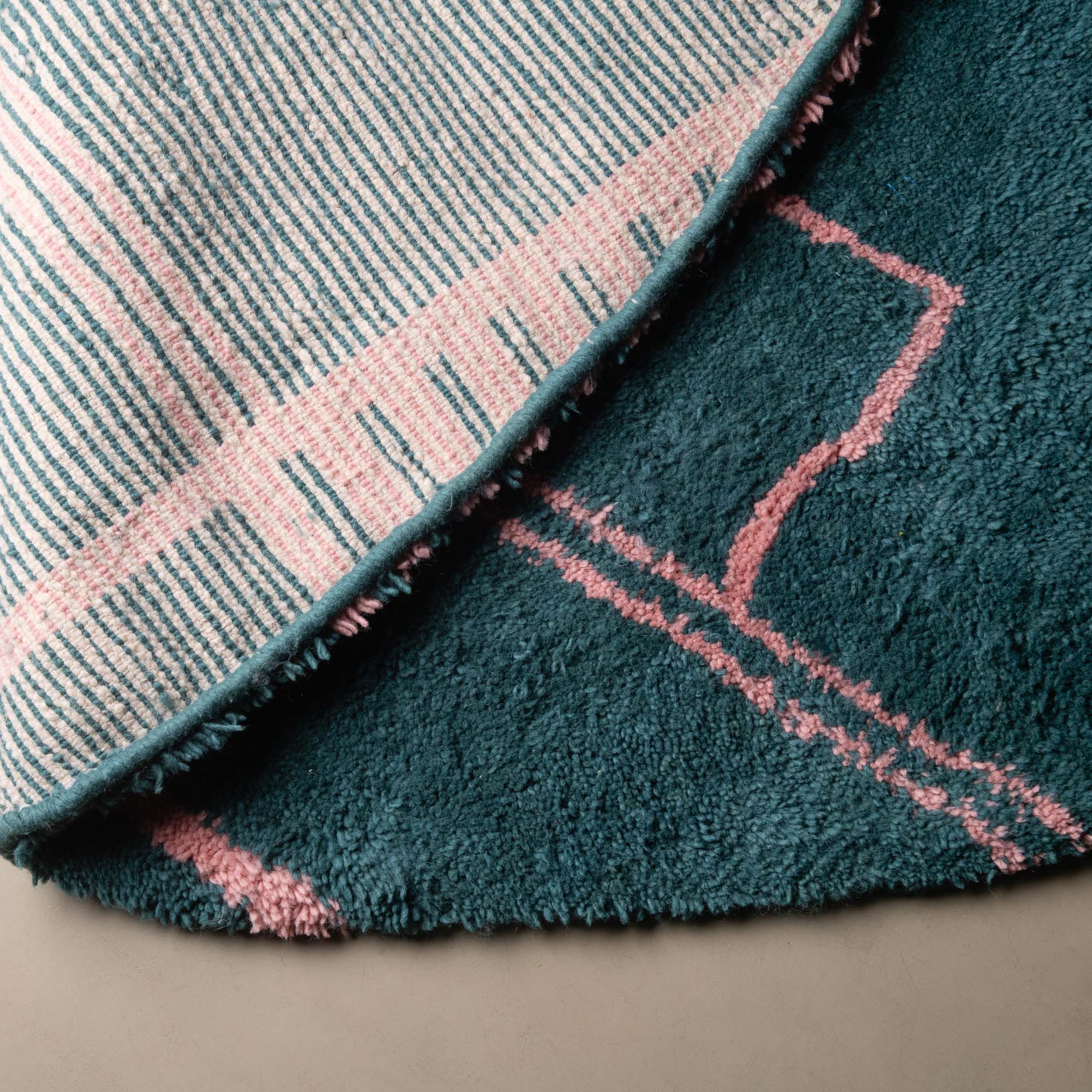 Chaque tapis est tissé nœud par nœud, puis lavé et séché à l'air libre sous le ciel serein du Maroc.