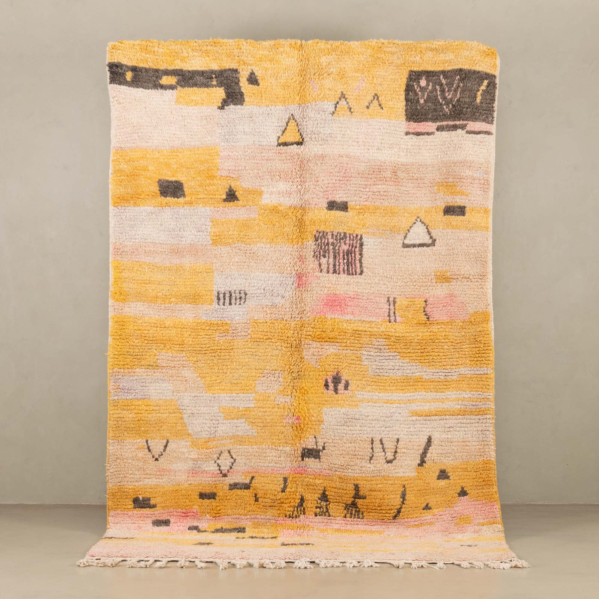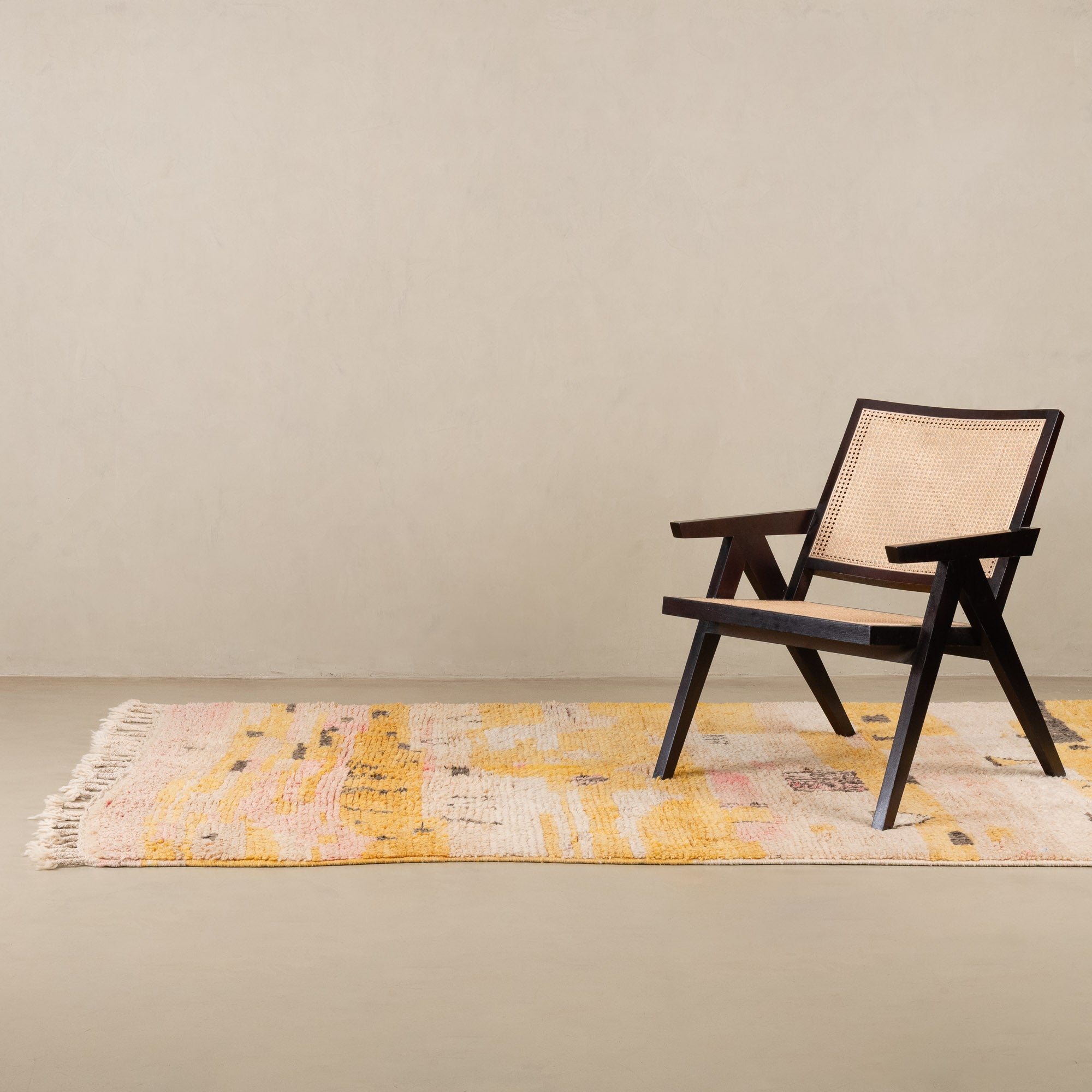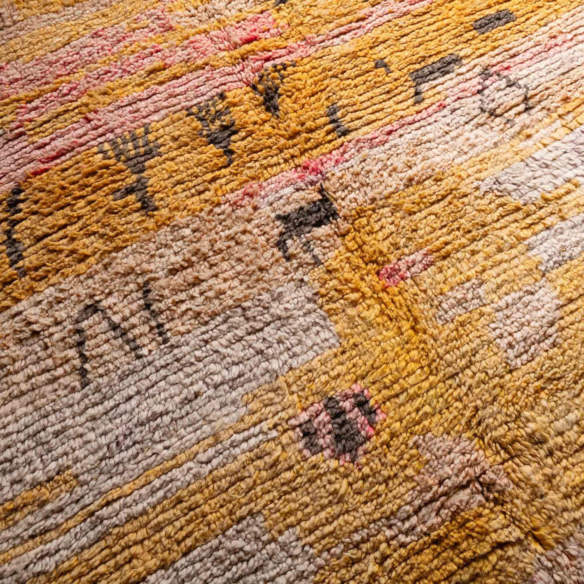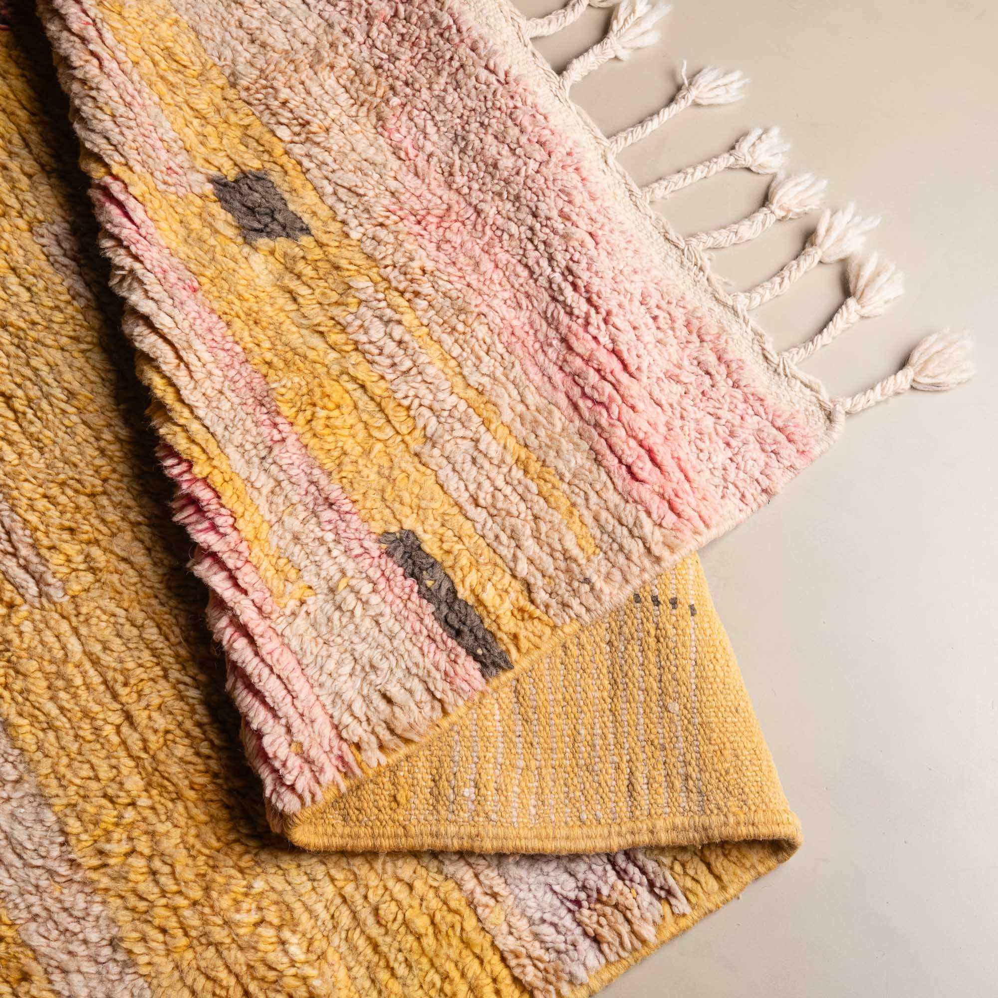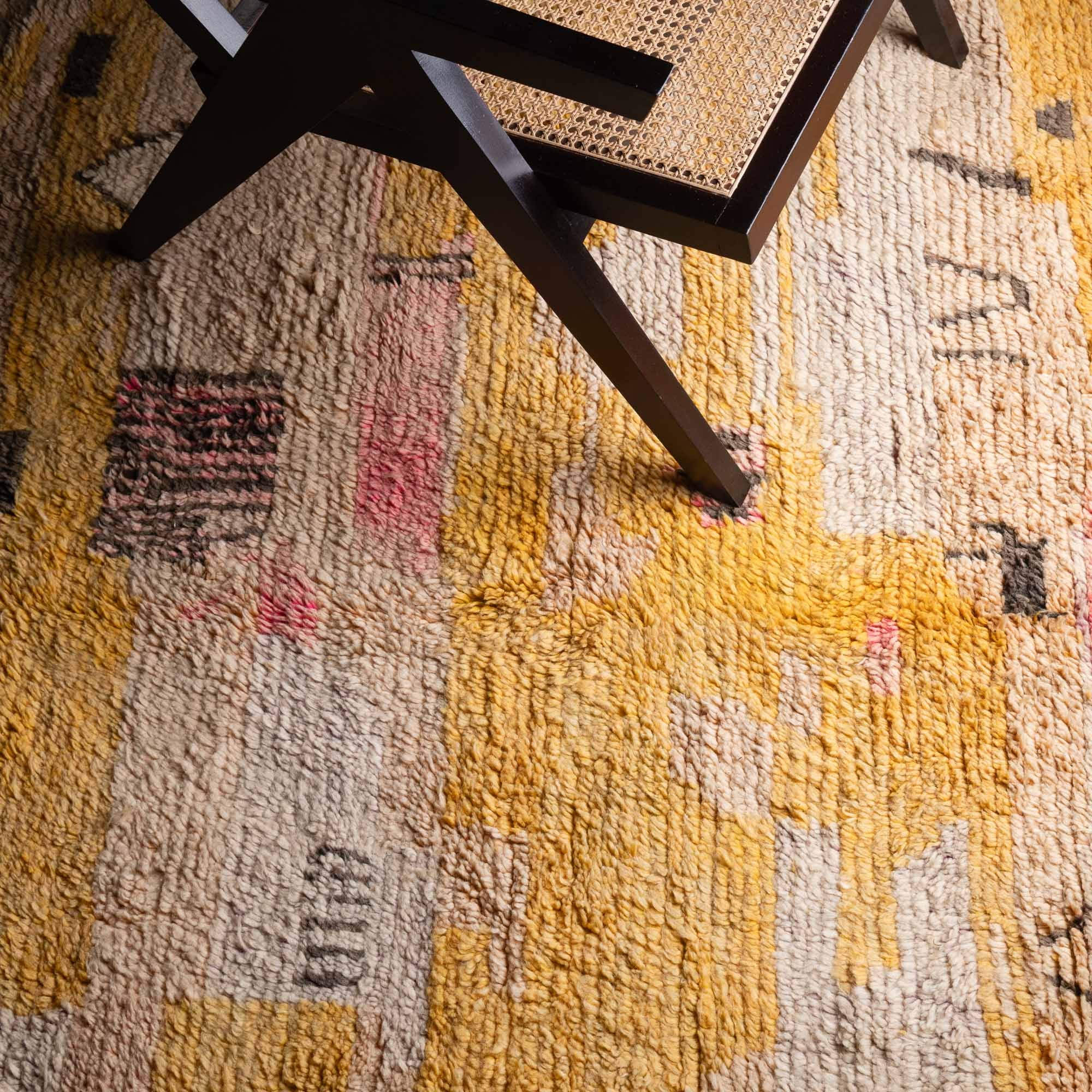 Marcher sur notre tapis marocain vintage est comme une douce étreinte pour vos pieds, sa laine douce et moelleuse offrant une sensation veloutée.
