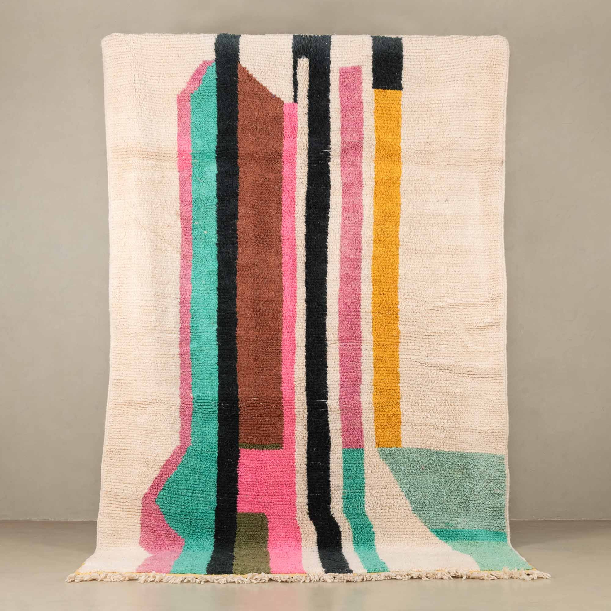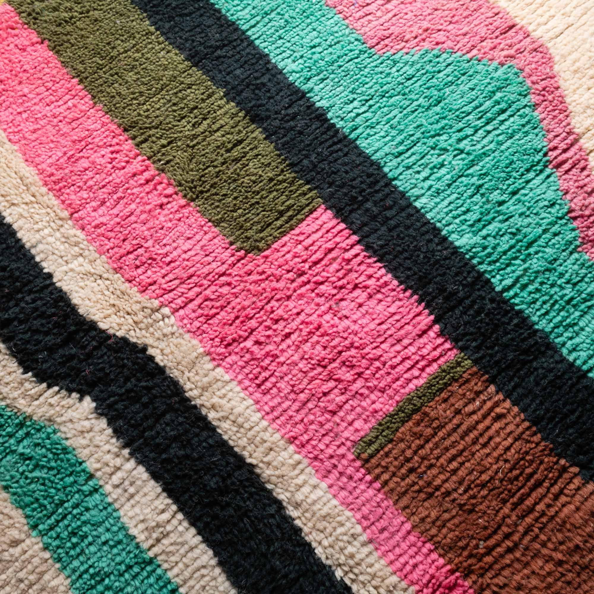 Marcher sur notre tapis marocain vintage est comme une douce étreinte pour vos pieds, sa laine douce et moelleuse offrant une sensation veloutée.