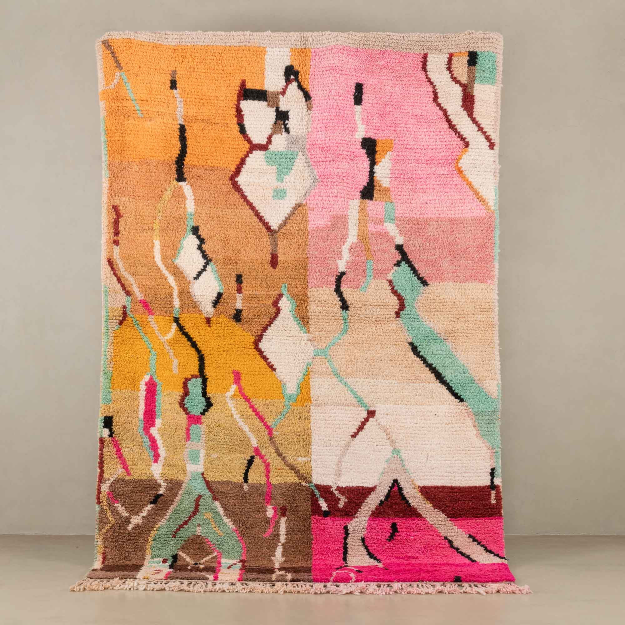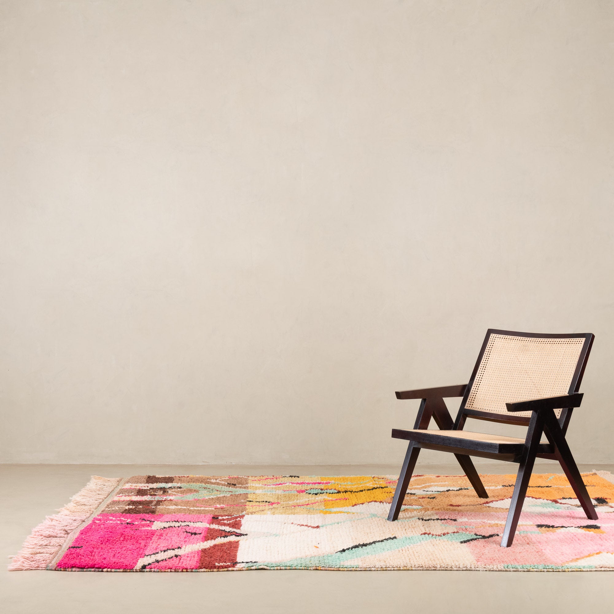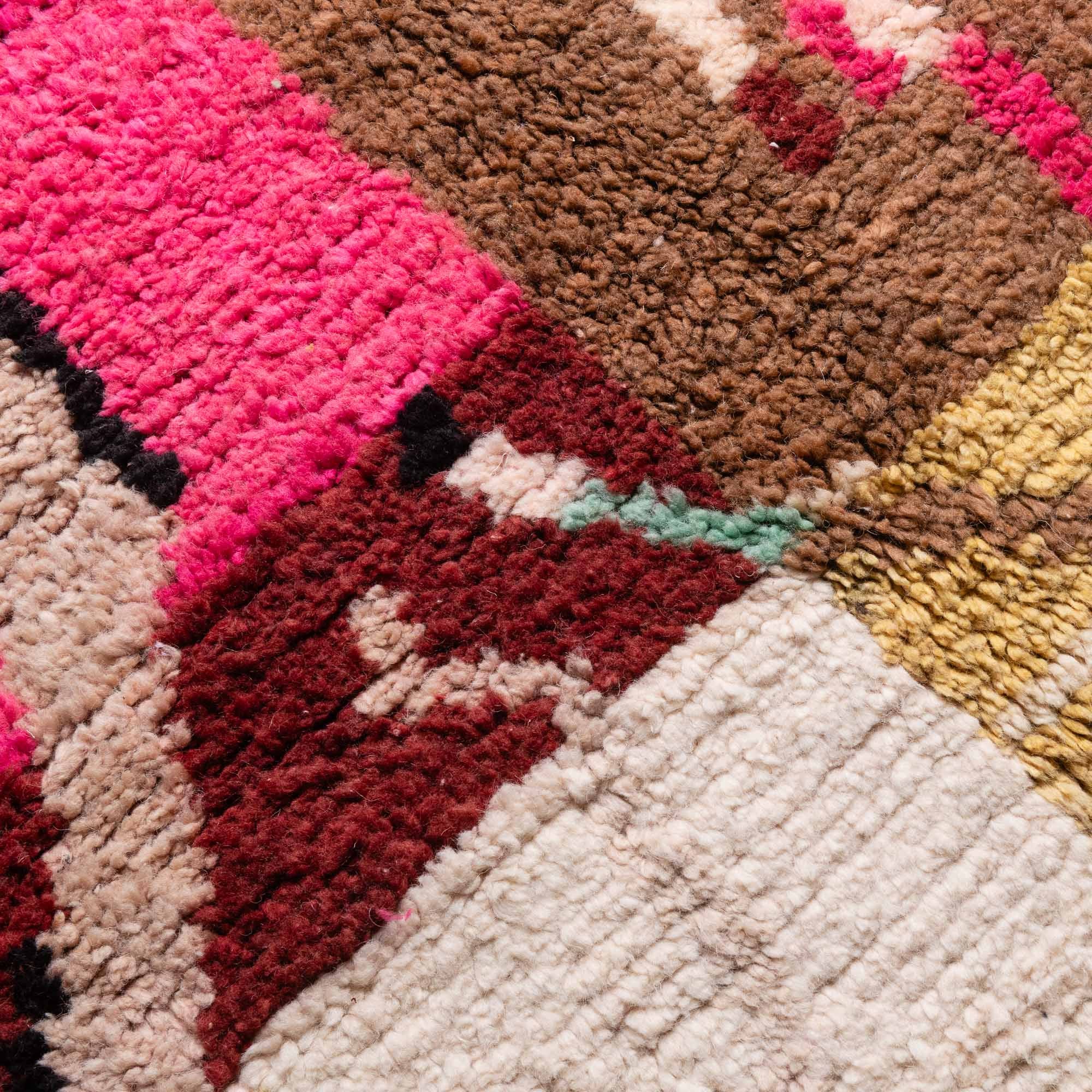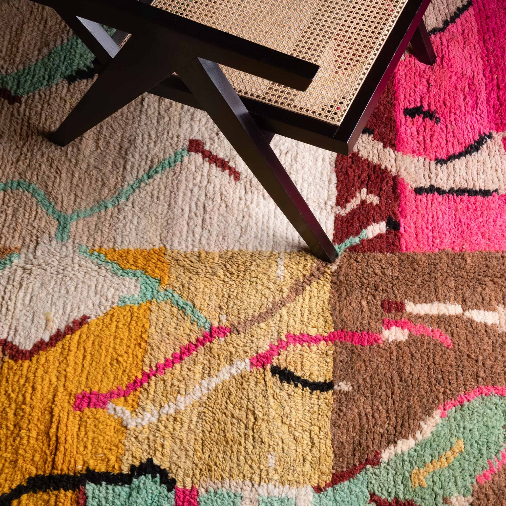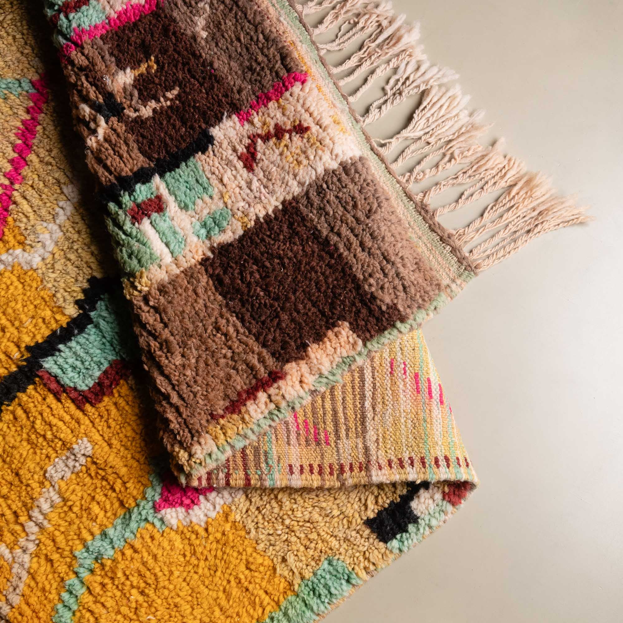 Marcher sur notre tapis marocain vintage est comme une douce étreinte pour vos pieds, sa laine douce et moelleuse offrant une sensation veloutée.